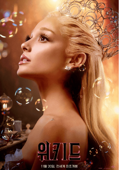 - 글린다 (아리아나 그란데): 엘파바와 대조적으로 밝고 사랑스러운 성격을 가진 캐릭터로, ‘선한 마녀’로 알려져 있어요.