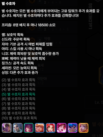 시즌 15의 '별 수호자 징크스' 덱은 4코스트 챔피언인 징크스를 메인 캐리로 활용하는 리롤 덱입니다. 징크스는 별 수호자와 저격수 시너지를 가지고 있어요. 이번 시즌 별 수호자 시너지는 단순히 마나를 채워주는 게 아니라, 각 챔피언마다 고유한 추가 효과를 부여하는데, 징크스는 '처치 관여 시 공격 속도 대폭 증가'라는 엄청난 효과를 받습니다.